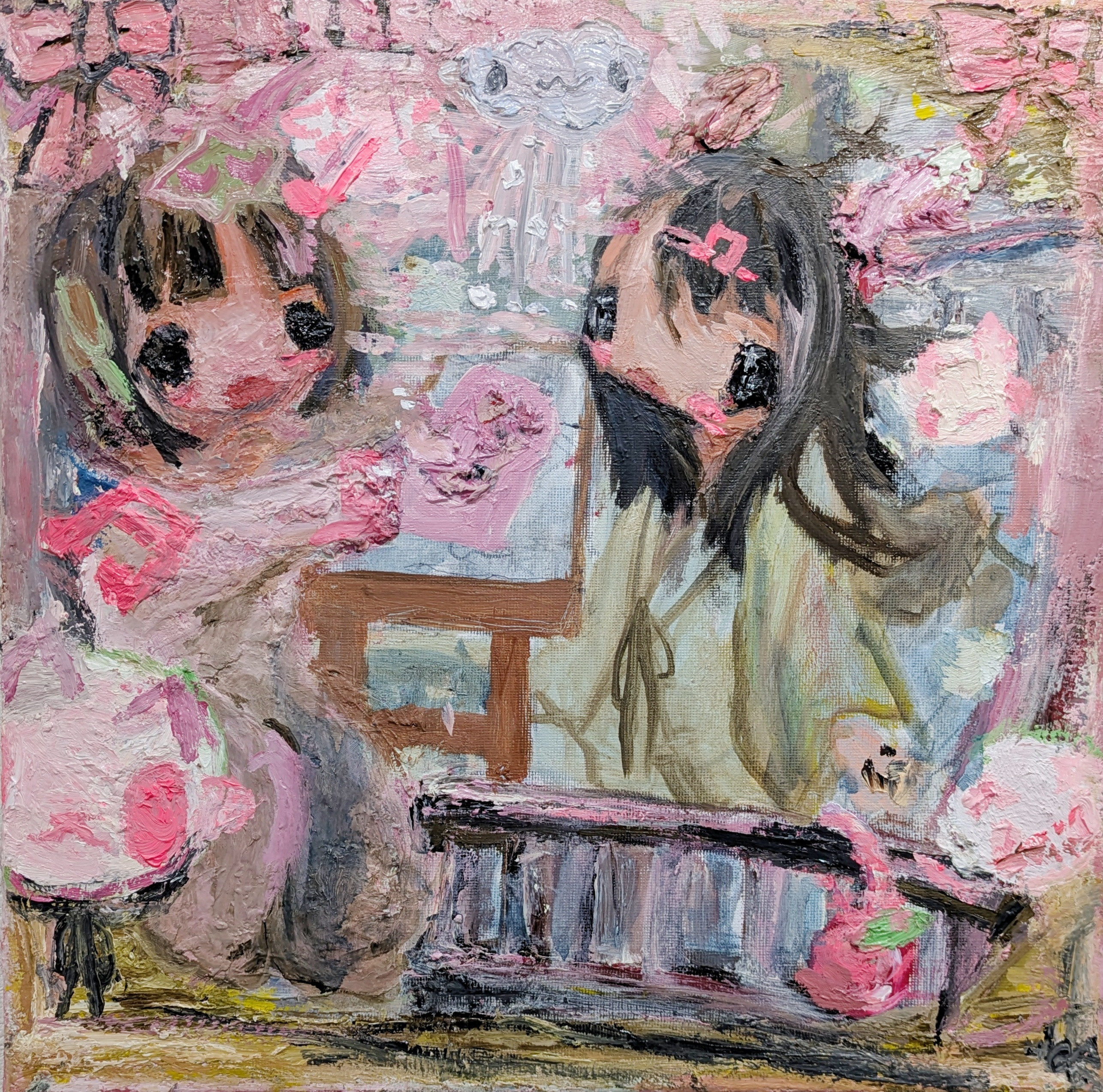 可愛さの中に不思議さや怖さ、懐かしさを秘めている絵を制作している。平面としての面白さと実際に見た時の質感や立体的な面白さの両立を模索している