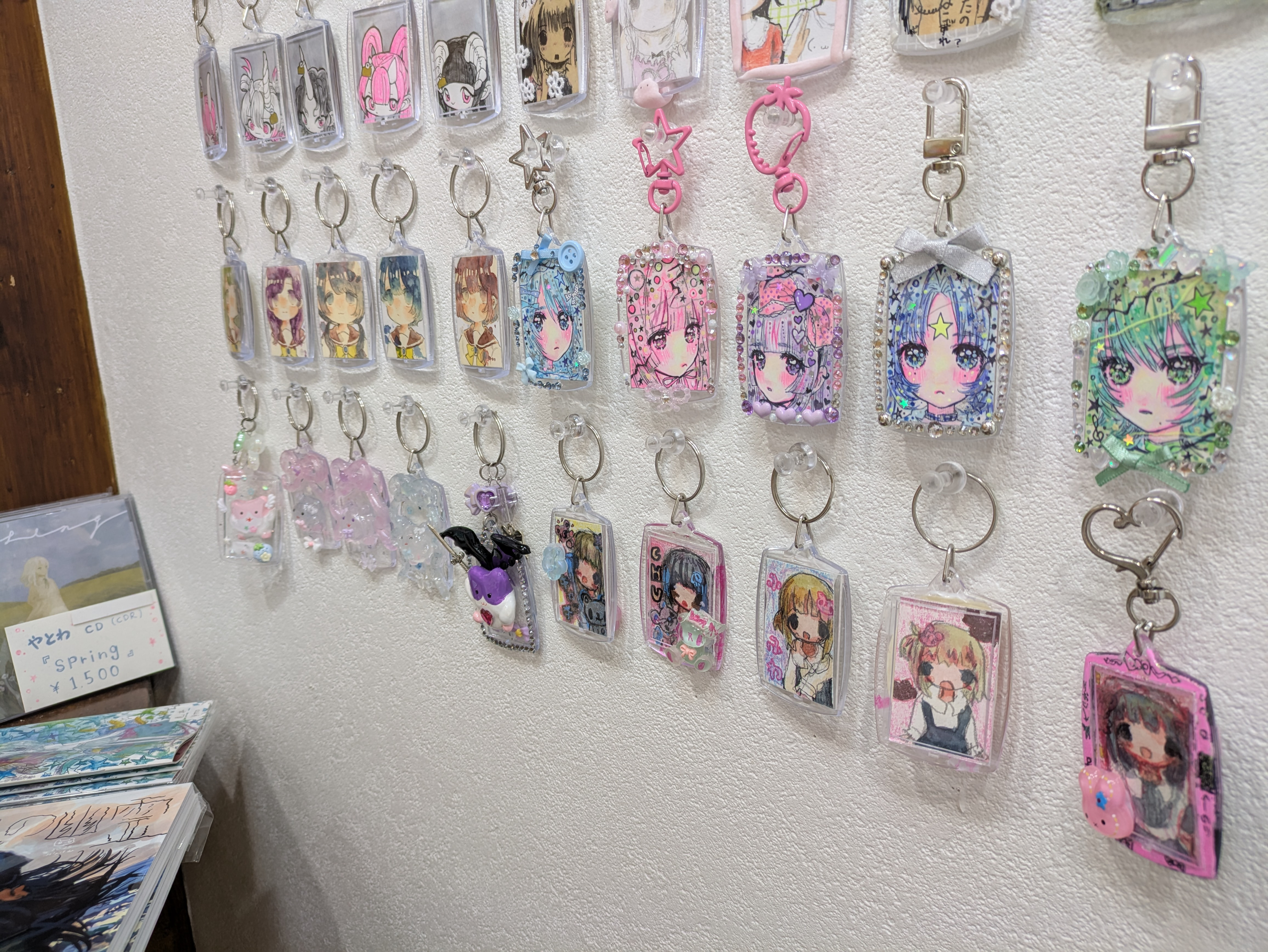 ギャラリーのカウンタースペースに、14名のアーティストが手掛けたキュートなハメパチ・キーホルダー70点が並びます。1アーティスト原則5点。ご購入後は、お持ち帰り可能です。個数限定のため、気になる方はお早めに。価格帯は500円~4000円。
